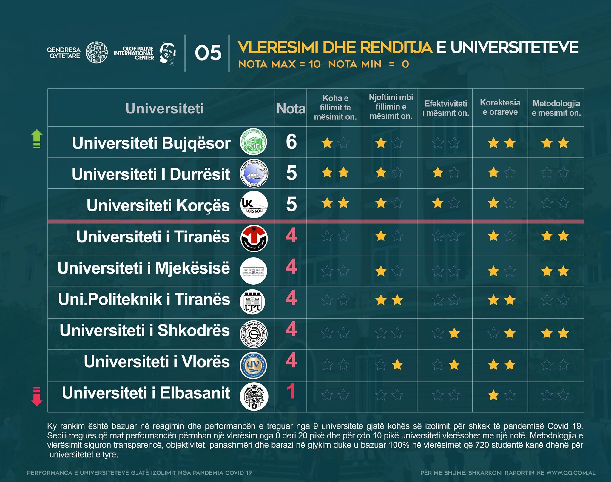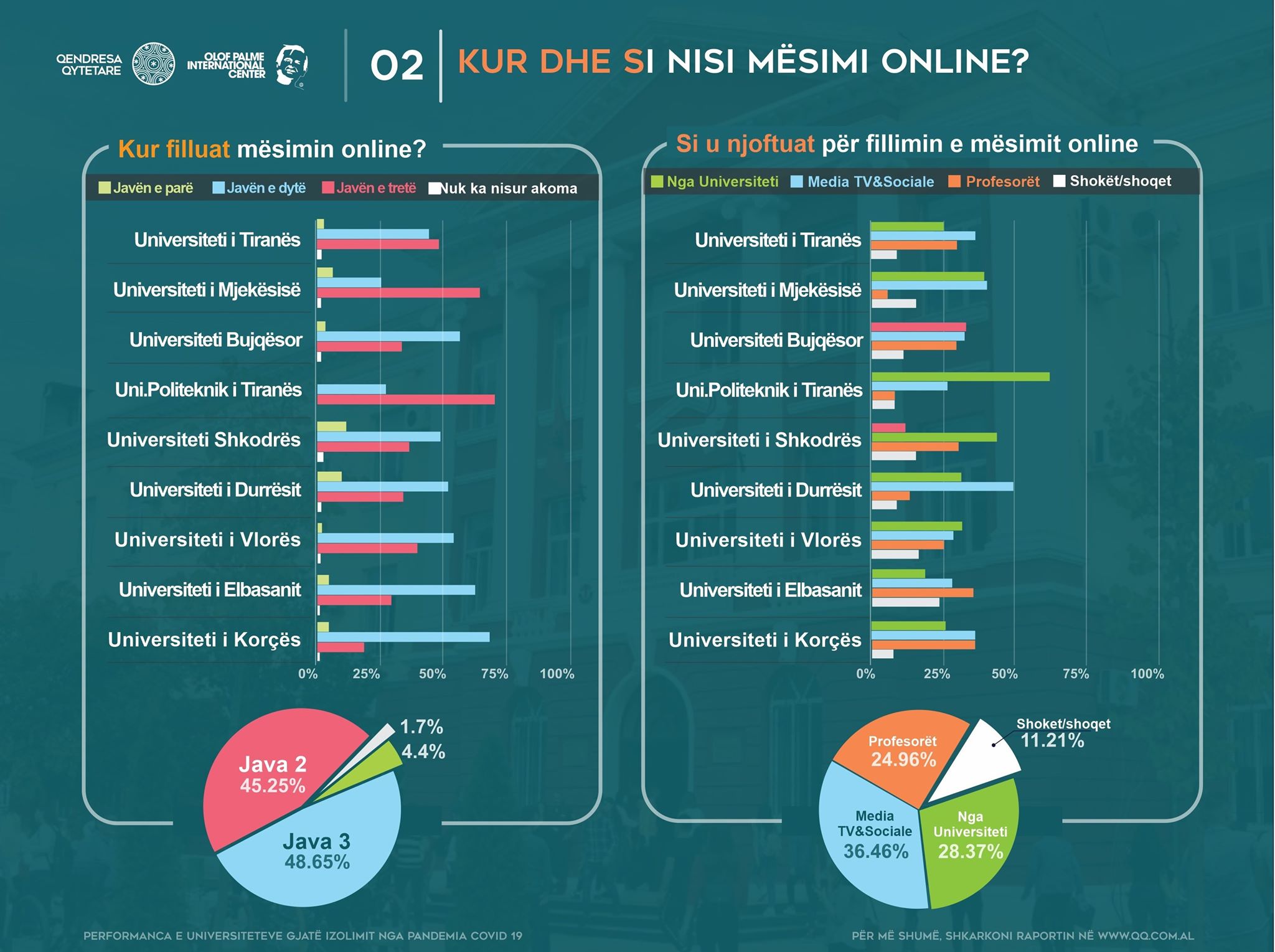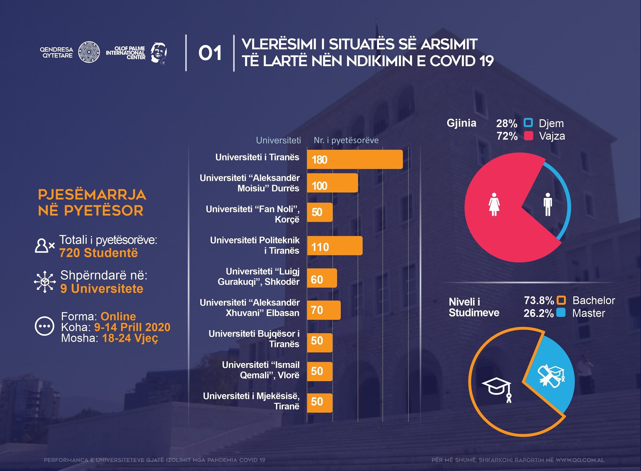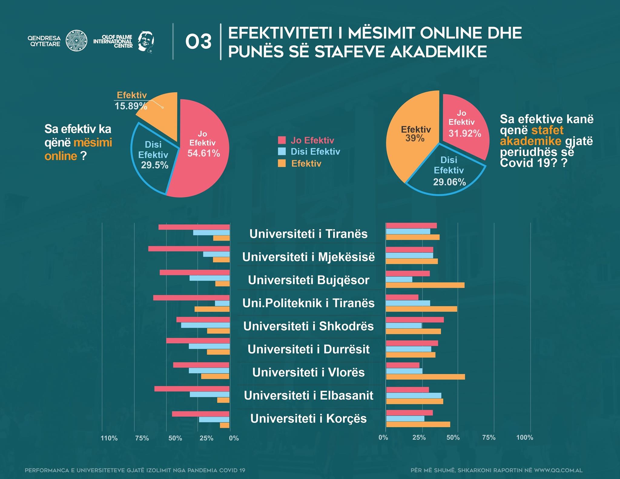 The CR is constantly monitoring the public universities, and has until now made several public calls to universities to re-evaluate the process of reducing school fees for students during this period. At the same time, they are monitoring digital government projects and selecting those that do not work, to make them available and accessible to students. These projects include: An intelligent classroom project; A digital library at universities; The student computer system at the University of Tirana, etc.